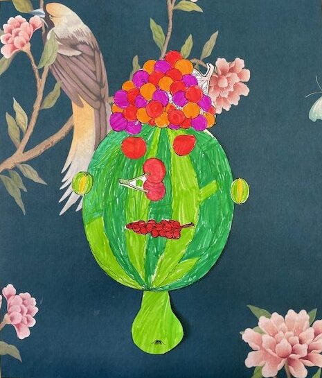 Guiseppe Arcimboldo war ein italienischer Künstler, dessen 500. Geburtstag im Jahr 2026 gefeiert wird. Er war ein begnadeter Maler, der aus Jux und Dallerei verschiedene Bildkompositionen aus Pflanzen, Tieren, Büchern, etc. zu bekannten Persönlichkeiten seiner Zeit schuf. In Anlehnung an Guiseppe Arcimboldo schuf die Klasse 3a im Dezember 2025 diese Collagen aus farbigen Früchten und Gemüse. Ein Gesicht sollte erkennbar sein.